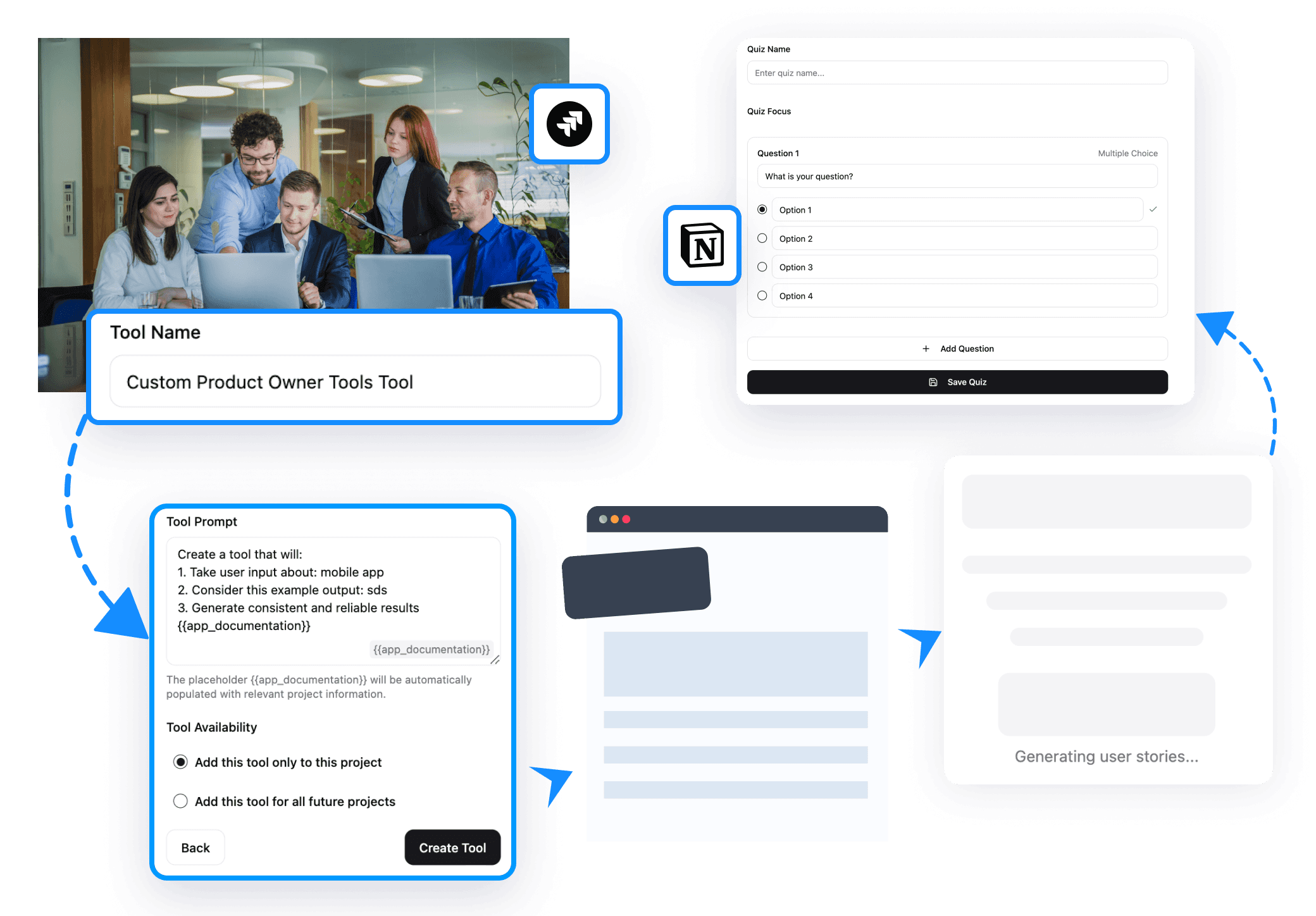 Export user stories directly to Jira, Linear, or Notion with a single click.